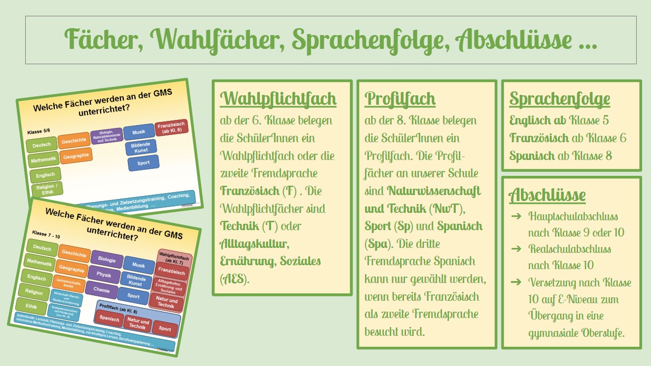 An der Gemeinschaftsschule kan man den Hauptschulabschluss und den Realschulabschluss ablegen. Darüber hinaus kann man sich auf den Übergang in eine gymnasiale Oberstufe vorbereiten.